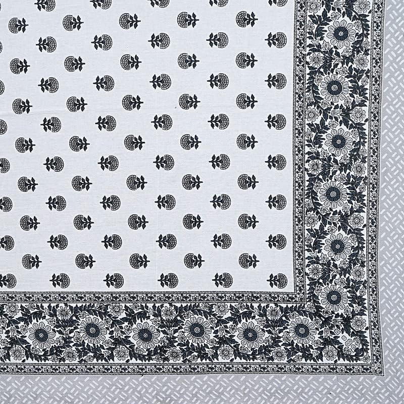 Monochrome Bloom – King Size Block Print Bedsheet Set