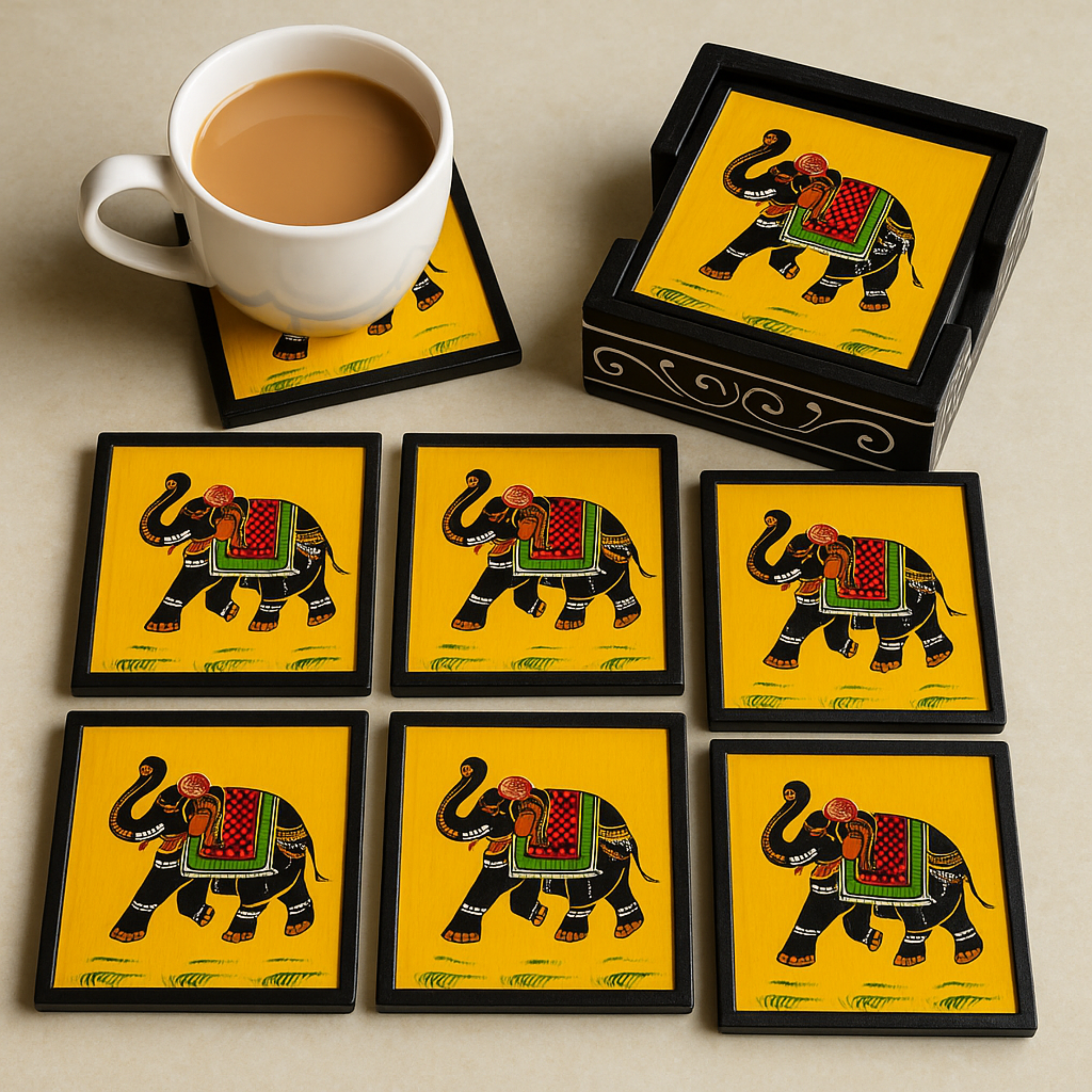 🐘 Royal Rajasthani touch – each coaster features a majestic elephant in vibrant folk detailing