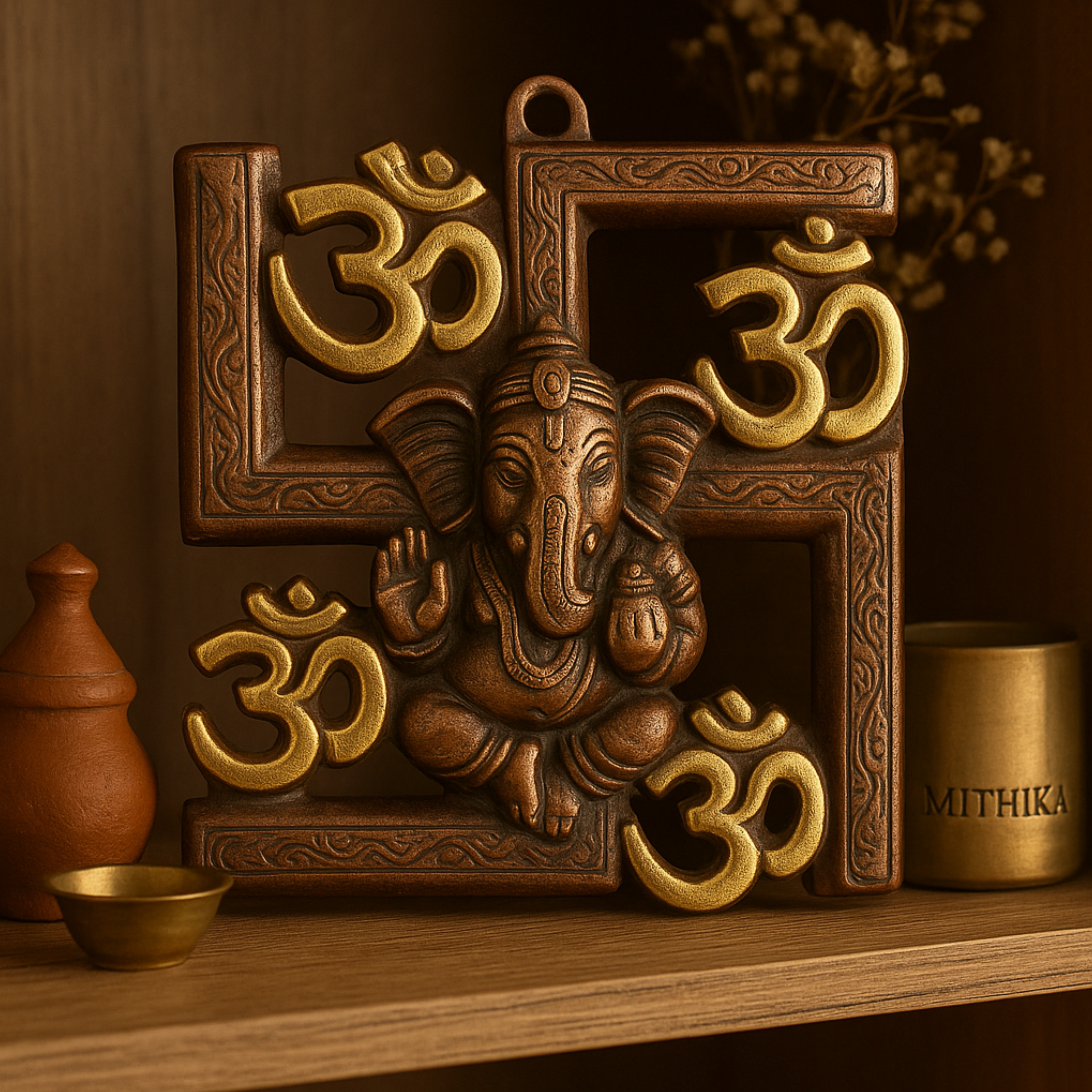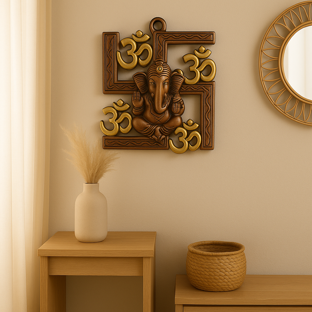 What was once a bare wall now radiates peace, tradition, and positive energy with MITHIKA’s handcrafted Ganesha wall décor. Featuring intricate Om symbols and a bold Swastik frame, this spiritual accent doesn’t just decorate—it blesses your space with presence, harmony, and timeless Indian artistry.
